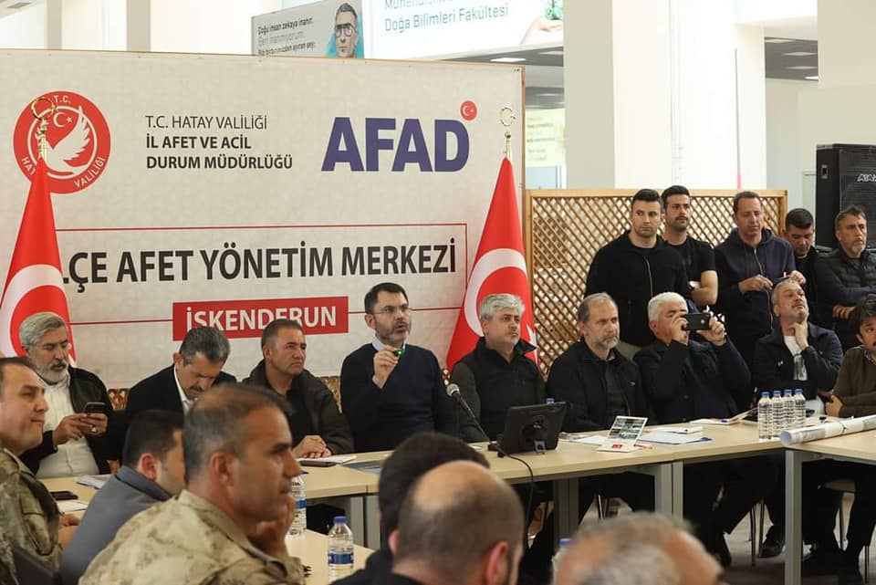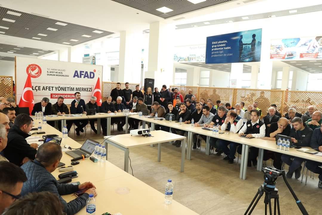 Hatay/İskenderun’da Kırşehir Valisi H. Mete Buhara’nın yanı sıra ilçe yetkilileri, STK temsilcileri ve kanaat önderlerinin de katılımıyla Çevre, Şehircilik ve İklim Değişikliği Bakanı Murat Kurum başkanlığında yapılan “İskenderun Koordinasyon Toplantısı”nda hasar tespit çalışmaları, geçici barınma süreci ve kalıcı konutlar için belirlenen rezerv alanlar ele alındı.