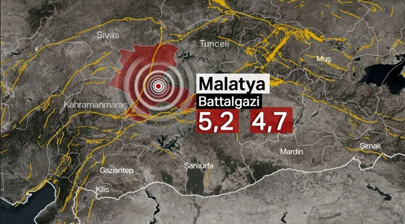Malatya’nın Battalgazi İlçesi merkezli, saat 17.46’da 5.2; 17.49’da 4.7 şiddetinde iki ayrı deprem ardı ardına oldu. Sarsıntı Kahramanmaraş, Adıyaman ve çevre illerde hissedildi. Deprem 6,99 kilometrelik derinlikte kaydedildi.